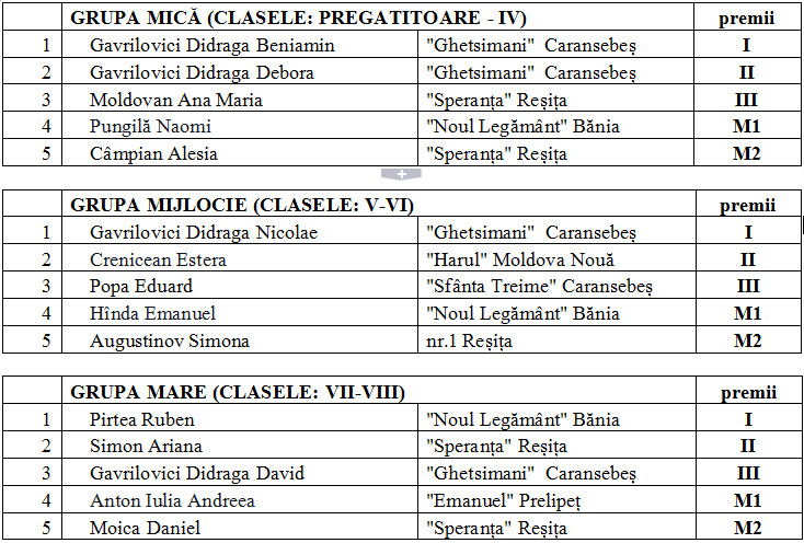 Olimpiada Biblică pentru copii și tineret, faza pe comunitate – 2016 » 1