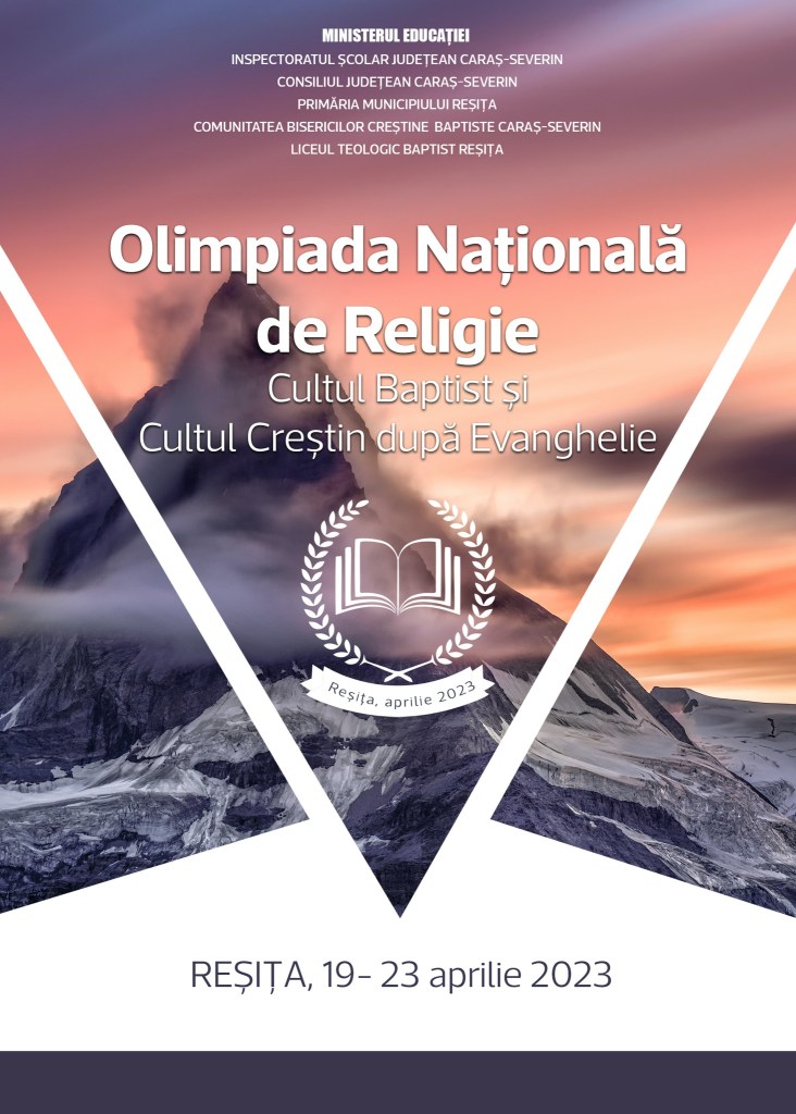 În perioada 19-23 aprilie 2023 se va desfășura la Reșița Olimpiada Națională de Religie – Cultul Baptist și Cultul Creștin după Evanghelie.